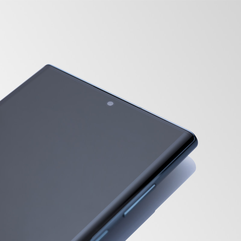 در نمای رو‌به‌رویی اما خبری از اتفاق جدید نیست و صفحه‌نمایش یکدستی را شاهد هستیم که به طراحی جذاب اینفینیتی O مجهز شده است. بریدگی دایره‌ای شکل ناچ در قسمت بالایی و مرکزی صفحه‌نمایش سنسور دروبین سلفی را در خود جای داده است. البته خمیدگی‌های قسمت کناری صفحه‌نمایش سبب شده تا به نسبت نسل‌های قبلی، میزان حاشیه به حداقل میزان ممکن برسد و در نهایت صفحه‌نمایش یکدست‌تر و جذاب‌تری را شاهد هستید. حضور فریم آلومینیومی در کنار متریال بسیار با‌کیفیت در نظر گرفته شده برای سبب شده تا این گوشی وزن نه‌چندان سبک ۲۲۸ گرم را با خود به‌همراه داشته باشد. با توجه به ابعاد و وزن در نظر گرفته شده، باید گفت که احتمالا در استفاده‌های طولانی مدت کمی خستگی برای دست را به‌همراه داشته باشد. اما در عوض حس و حال یک گوشی هوشمند پرچمدار و قدرتمند را به‌خوبی به کاربر منتقل می‌کند. از طرفی همین متریال با‌کیفیت سبب شده تا سامسونگ Galaxy S22 Ultra توانایی پشتیبانی از استاندارد ضد‌آب IP68 را داشته باشد. با این تفاسیر، سامسونگ Galaxy S22 Ultra توانایی قرار‌گیری در عمق ۱.۵ متری آب و مدت زمان ۳۰ دقیقه را دارد.